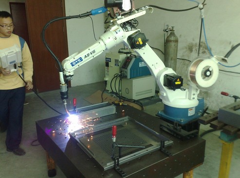 6.剎車裝置:在焊接機(jī)器人的鏈接關(guān)節(jié)處均設(shè)有剎車裝置,以防止焊接機(jī)器人旋轉(zhuǎn)或松脫,當(dāng)工作結(jié)束后用以停放焊接機(jī)器人。